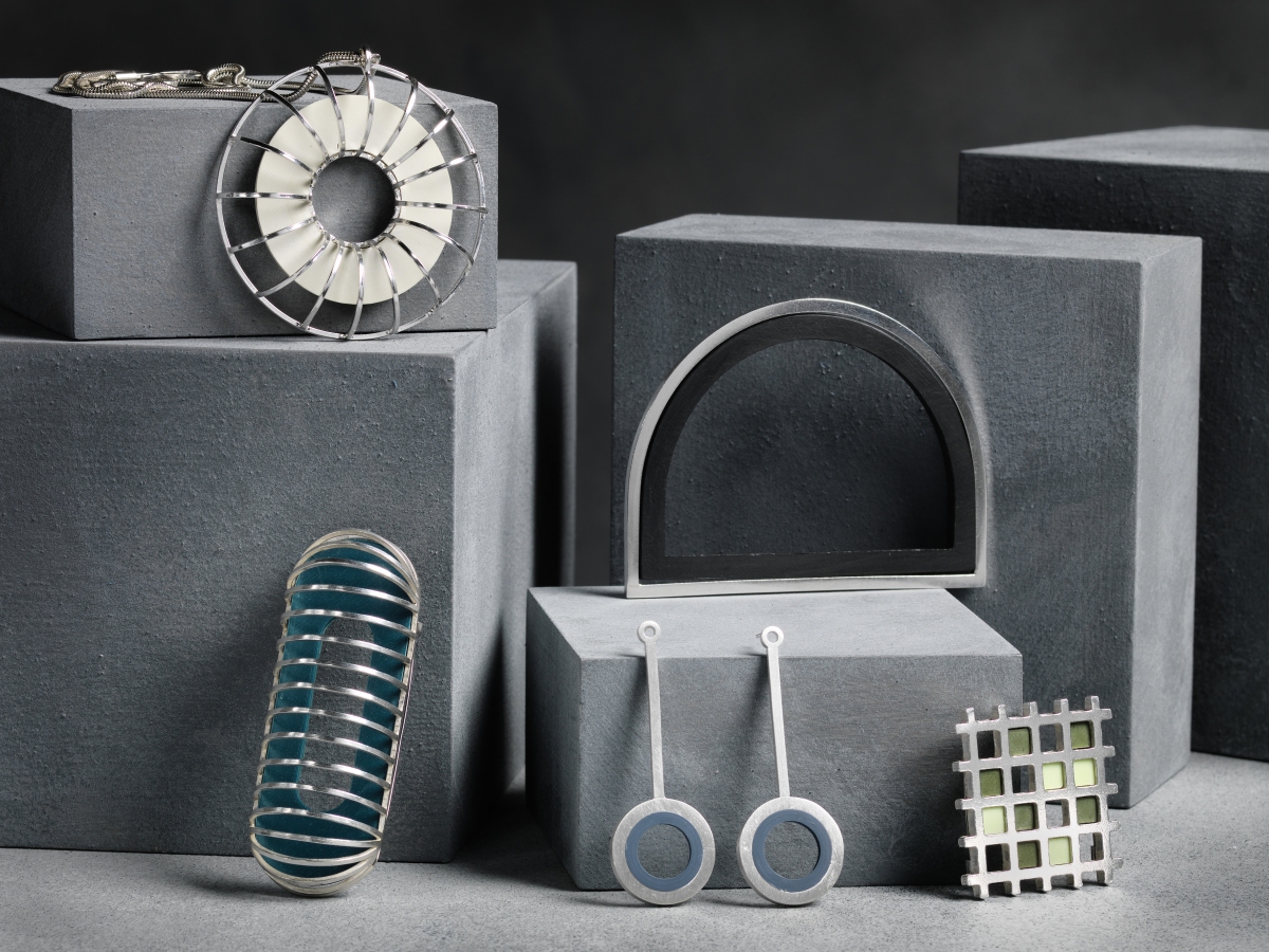 Contemporary jewellery inspired by mid-century and modernist design, made with a sustainable focus. Colourful, lightweight and perfect for everyday wear. The jewellery is made using PLA a plant based, sustainable material and recycled silver. Processes involve 3D printing, precious metal casting and traditional jewellery making techniques. The jewellery is currently available through stockists, galleries, showcases, online shops and various events throughout the UK.
