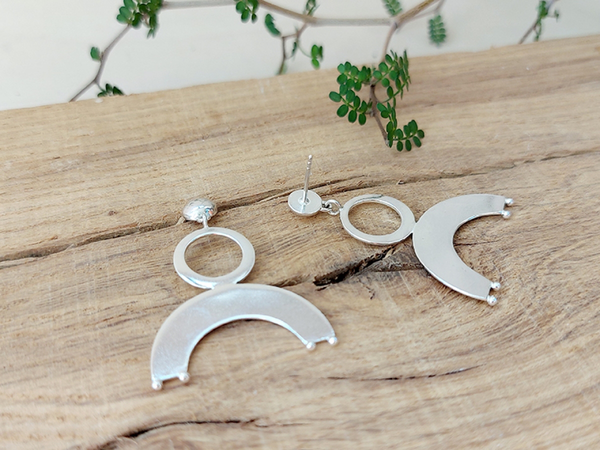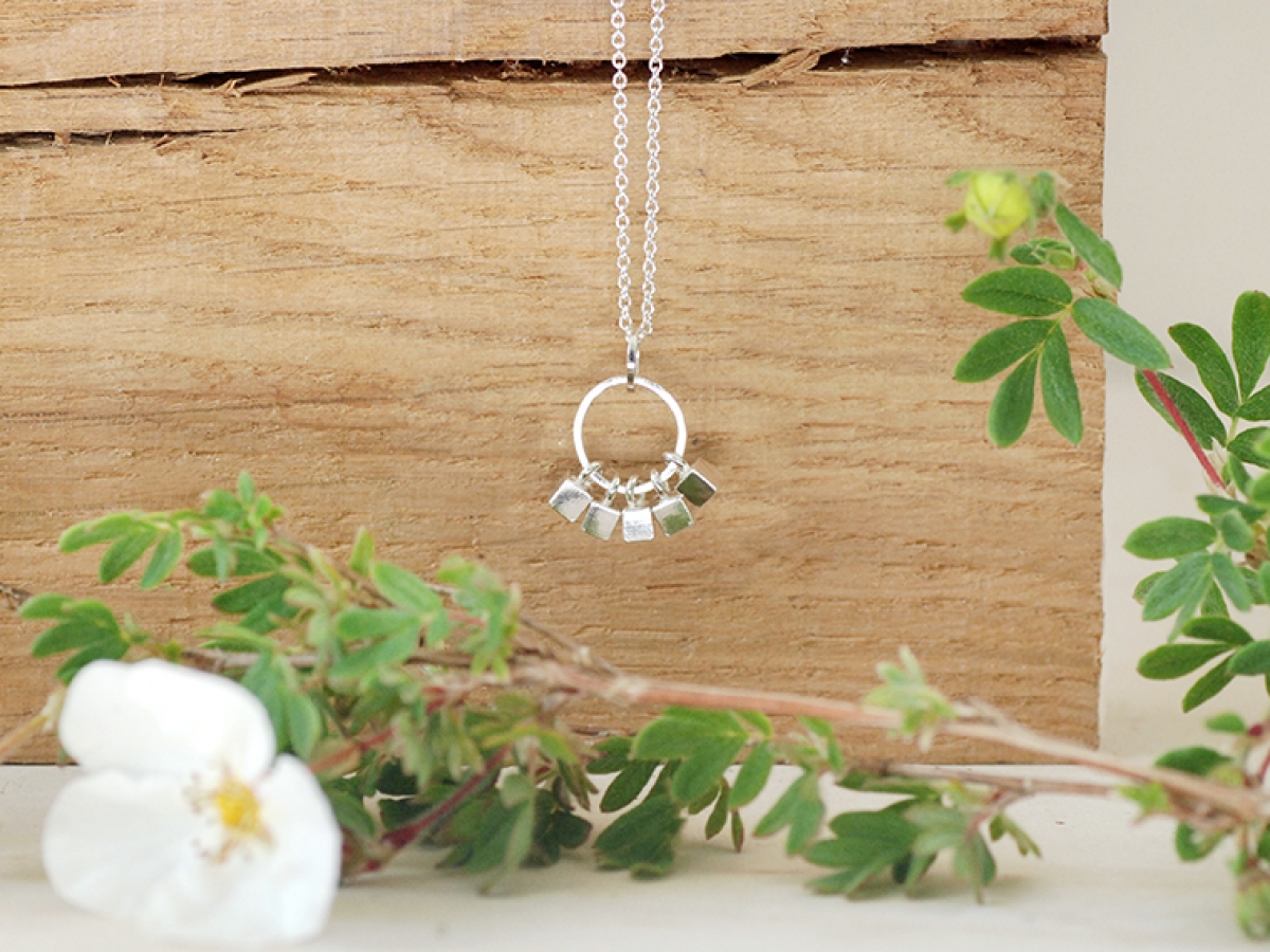Handmade, ethical jewellery. Primarily made from silver, with some gold accents. All materials used are recycled or ethically sourced.