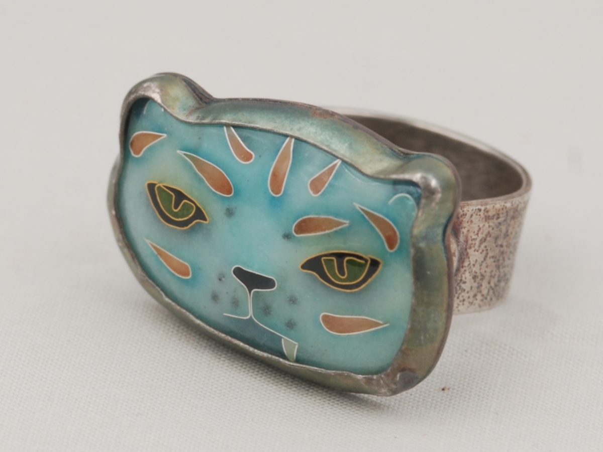 I enamel animals and imps and things in between. My creatures are intended as familiars and companions in the portable form of jewellery. I use glass enamel and wire with enamel pigments to create these beings which usually undergo between 6 and 20 firings, I then set them alongside semi precious stones in silver and gold to create rings and pendants. My aim is for my enamels to achieve a balance between creativity, technical skill and character.
